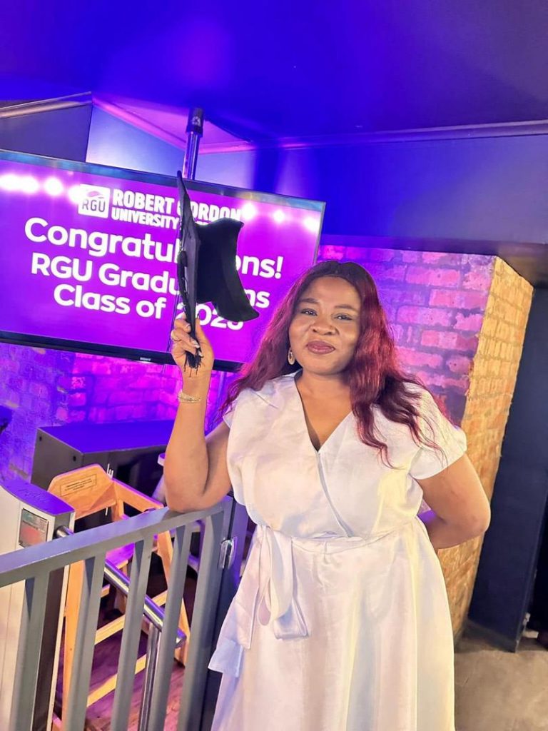 We celebrate the inspiring academic journey of Mrs. Bolanle Akin-Taiwo, Proprietress of The Elect School, who has successfully graduated from Robert Gordon University (RGU).